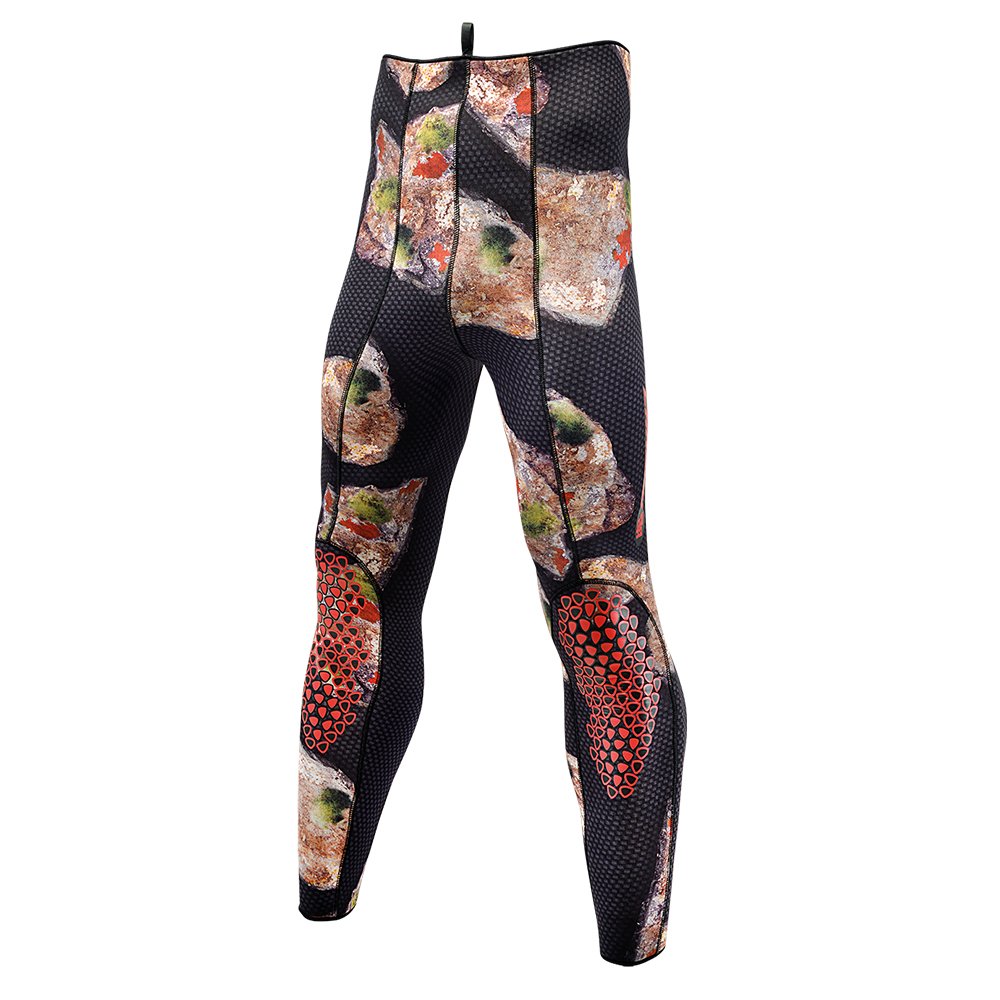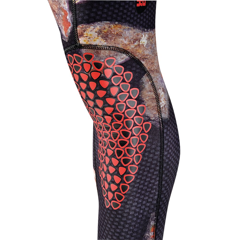 The exclusive design of this wetsuit features a background in carbon fiber color with spots of 3D camouflaged sea bottom. This solution breaks the image of the diver increasing the camouflaged effect.